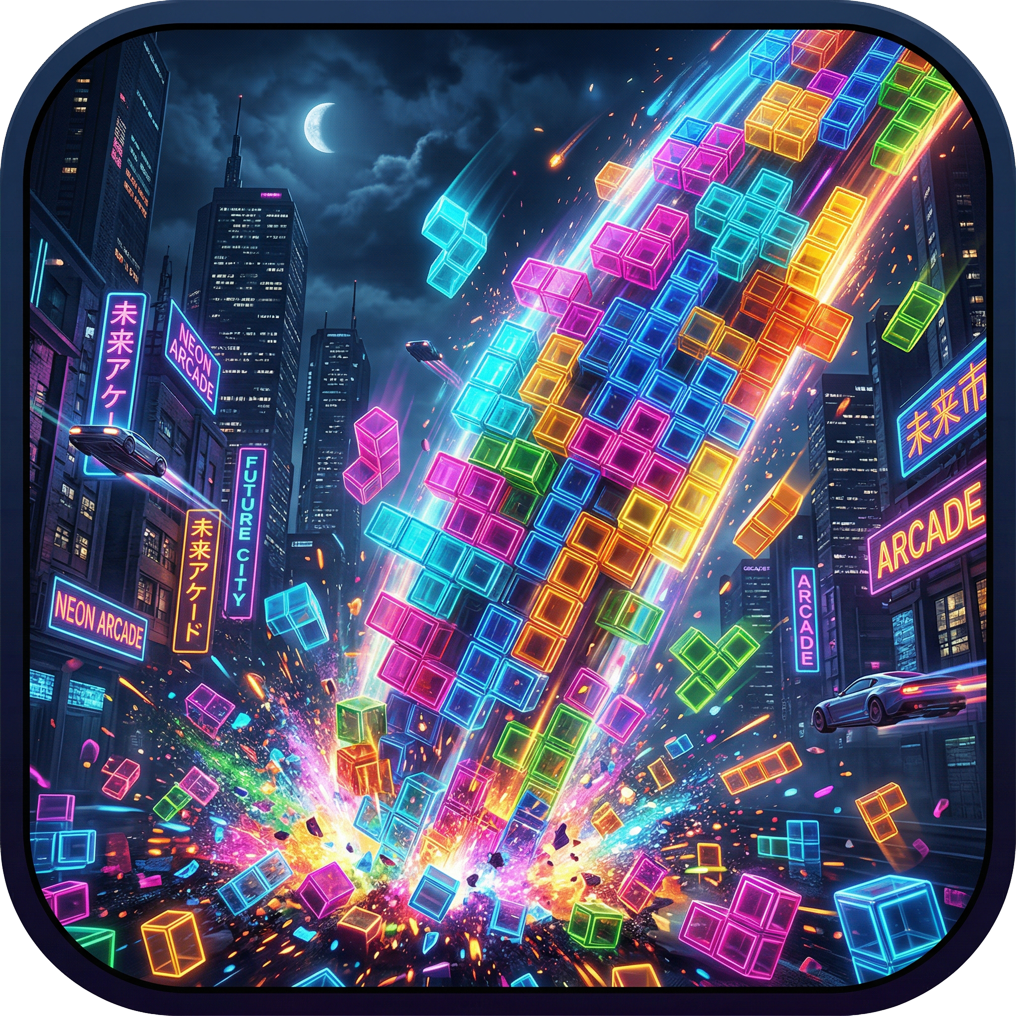 It is a neon block puzzle game built around line clears, special blocks, score targets, and world rules that keep changing mid-run.